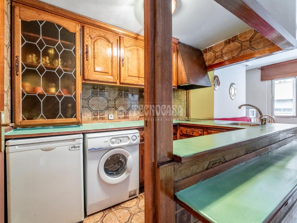 La vivienda dispone de un recibidor-distribuidor que conecta con una cocina americana de concepto abierto y distribuida a una encimera que mantiene el diseño y la disposición originales. Un amplio salón comedor con una gran cristalera que mantiene el piso luminoso todas las horas del dia. El inmueble dispone de un dormitorio con cuarto de baño en suite con un armario empotrado junto a la puerta.
