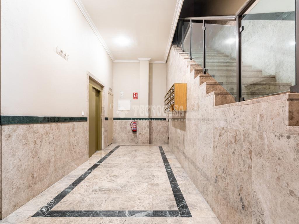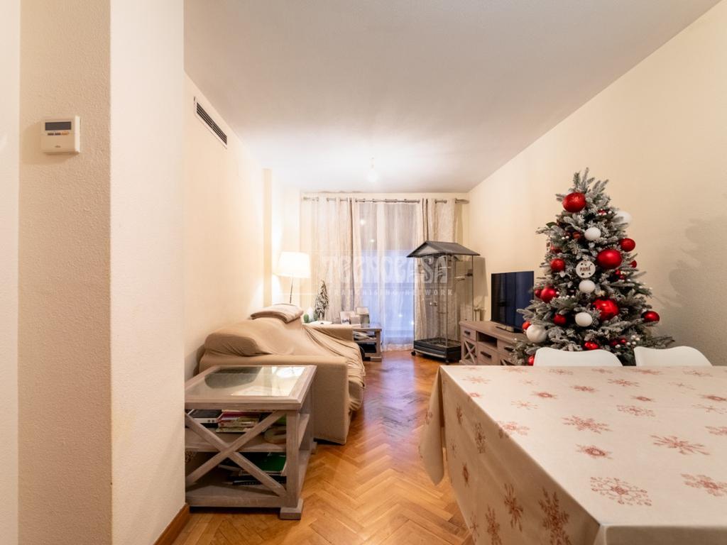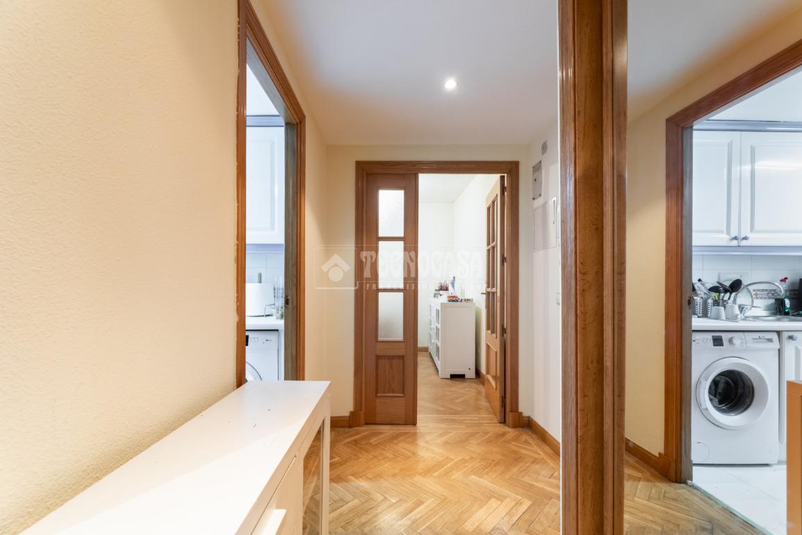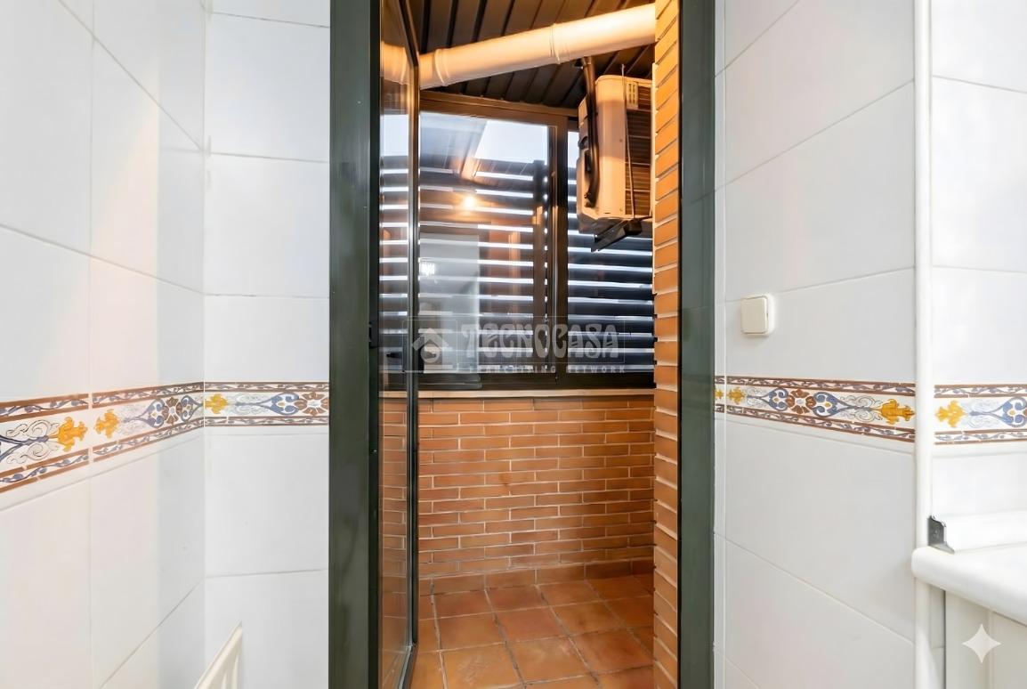 La vivienda se distribuye en un recibidor/distribuidor que da paso a un amplio y luminoso salón comedor ampliado tras una obra que le dio la terraza. Un cocina en pasillo distribuida a una encimera, con mucho espacio de almaceanamiento y paso directo a una terraza tendedero que alberga además la caldera de gas natural del inmueble.