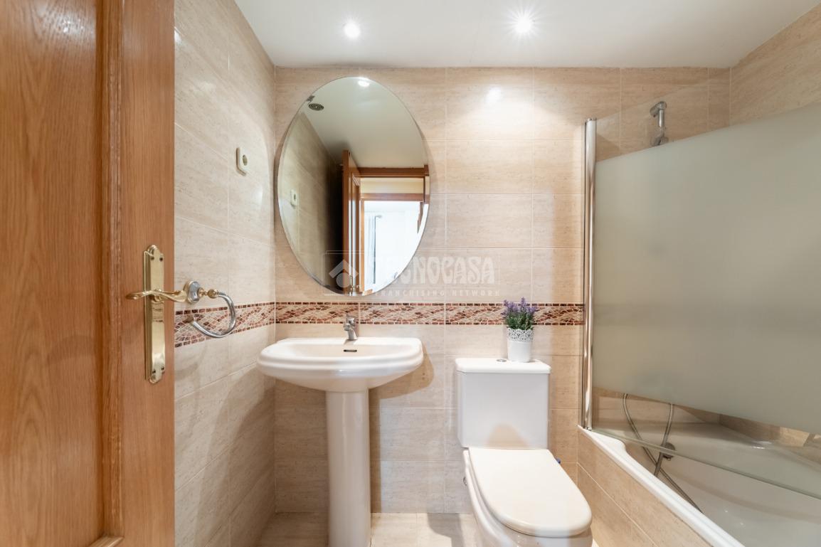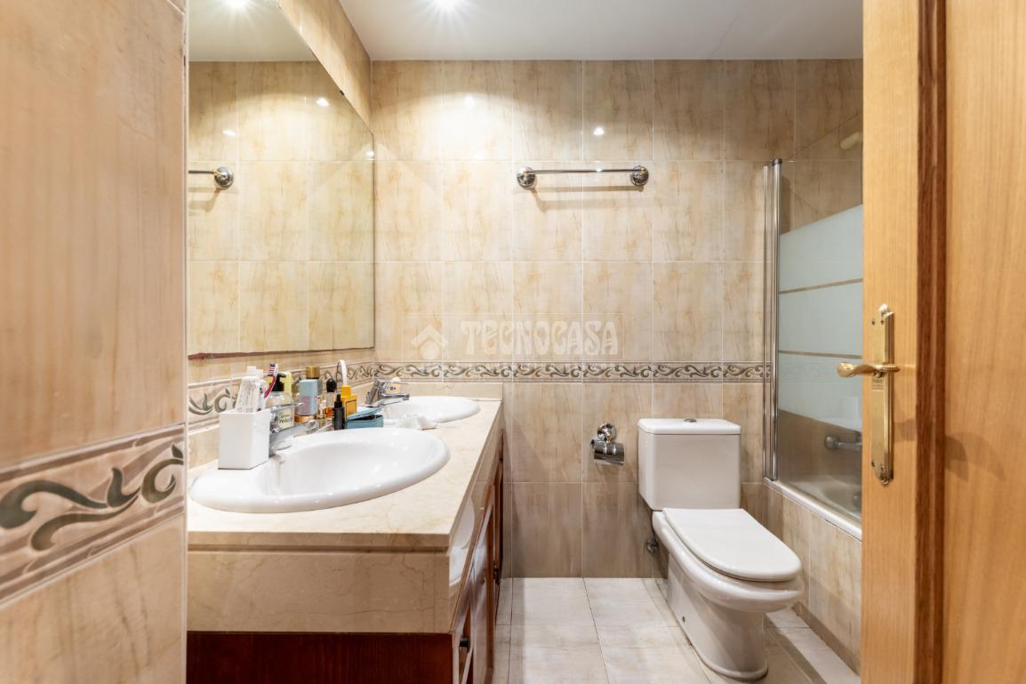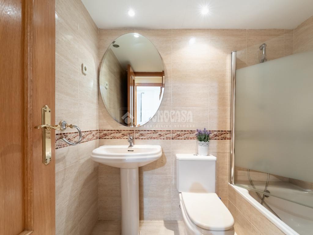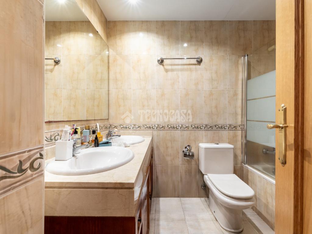 Seguidamente damos paso mediante un pasillo distribuidor, con armario empotrado con espejo, a la zona privada del piso: con un primer dormitorio con armario empotrado de puertas correderas con espejo y el dormitorio principal, también con armario empotrado de puertas corredera, y un cuarto de baño en suite con bañera. Finalmente, la casa tiene un segundo cuarto de baño completo, con bañera también.