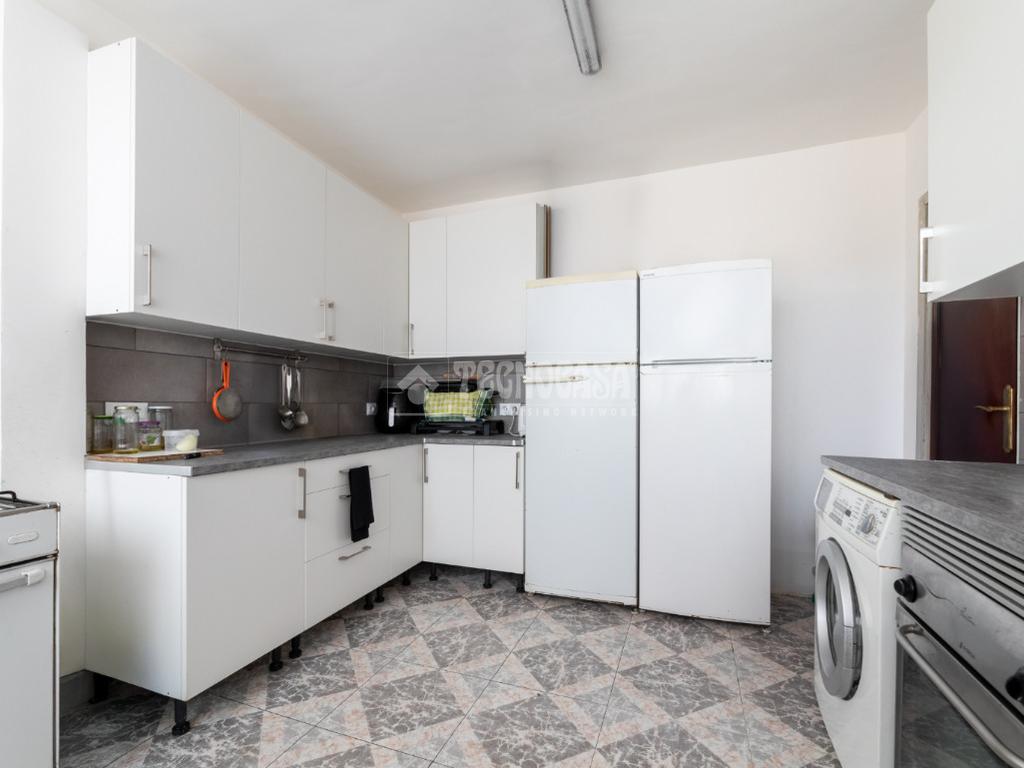 La vivienda comienza por un recibidor/distribuidor que nos da paso a un amplio y muy luminoso salón/comedor, con acceso directo a una inmensa terraza en pasillo que recorre todo el lateral del inmueble por el exterior; seguidamente accedemos a una luminosa y grande cocina cuadrada, con dos ambientes de trabajo distribuidos en una encimera doble y con espacio para ubicar una mesa.
