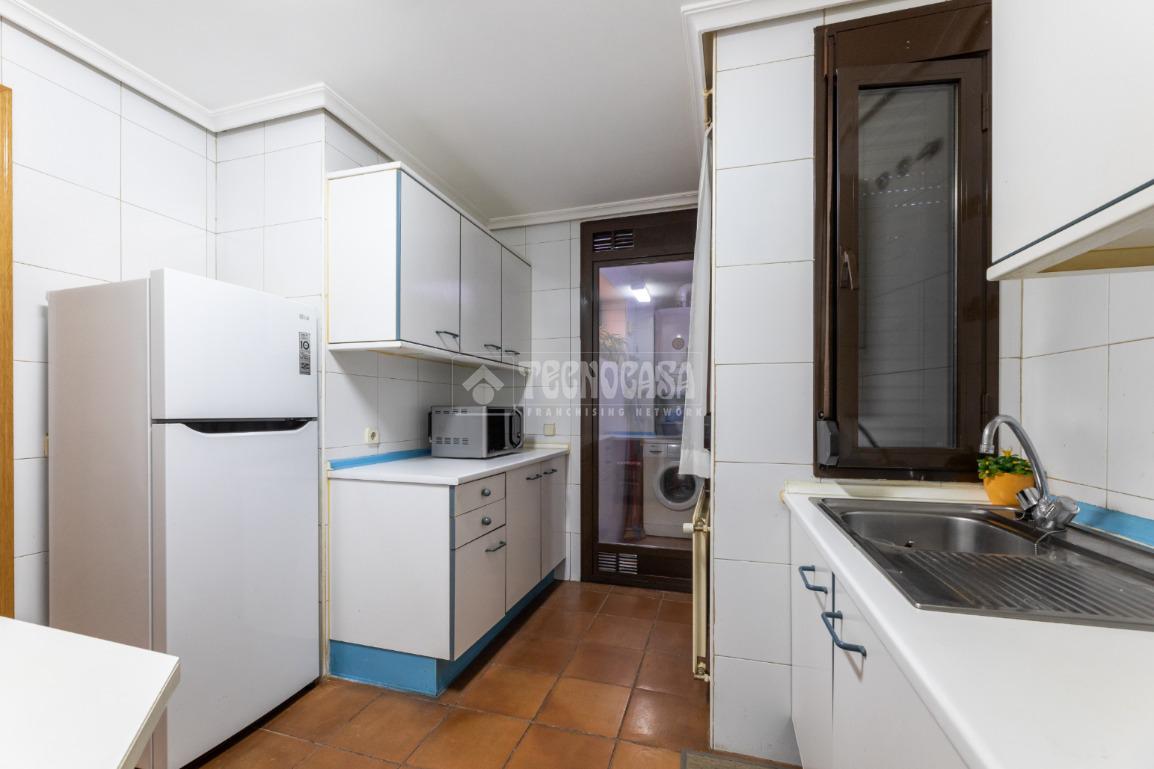 A través de un pasillo distribuidor accedemos al resto de las estancias. A la derecha encontramos una cocina de grandes dimensiones, muy funcional, que cuenta además con un práctico cuarto de lavandería independiente con salida a un patio interior, aportando ventilación y comodidad en el día a día.