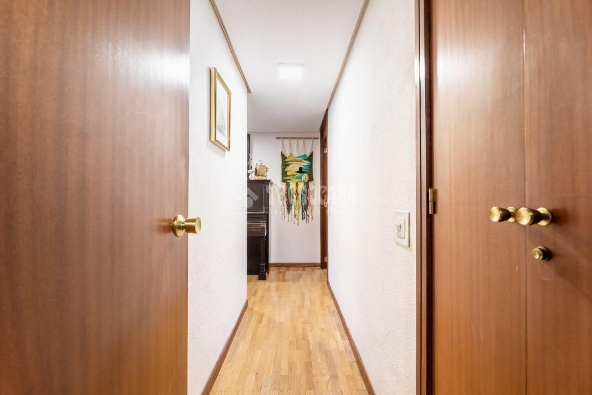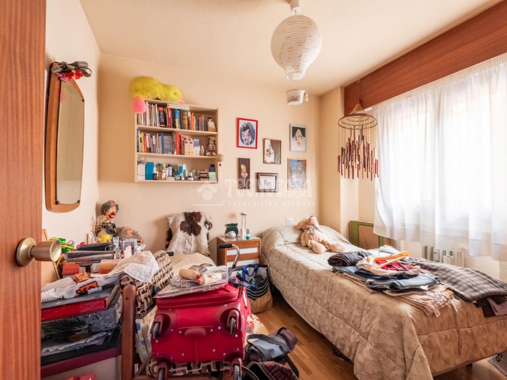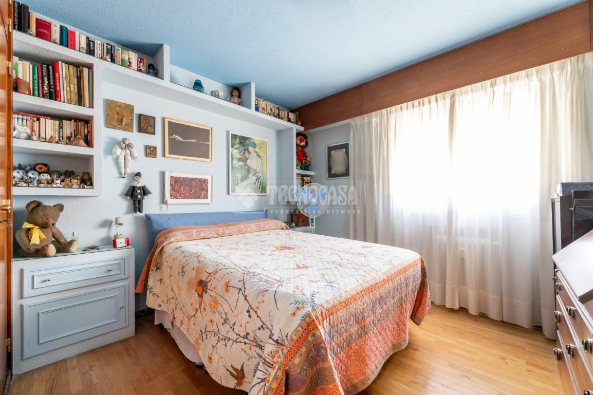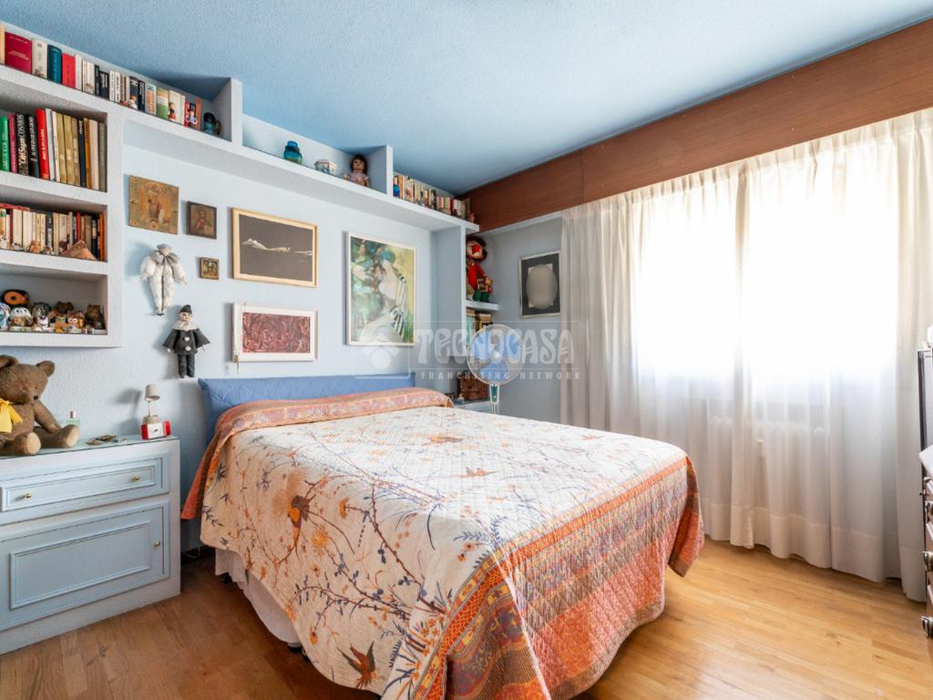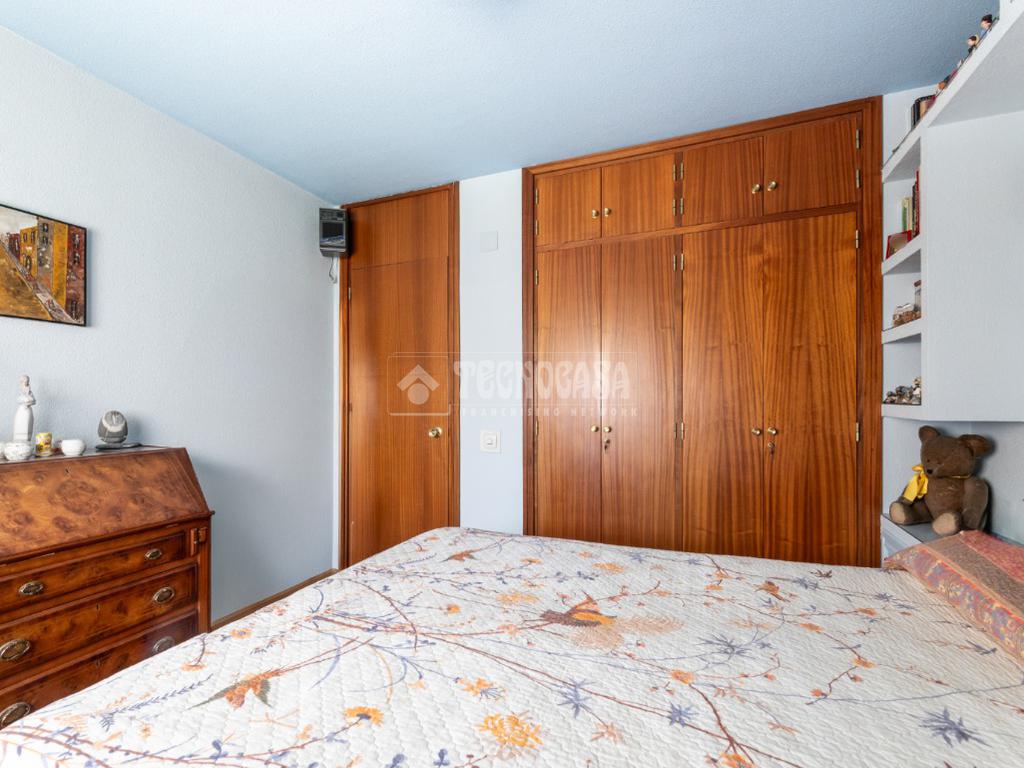La vivienda dispone de cuatro amplias estancias, bien diferenciadas de la zona más social del inmueble, a la que se acceder por un pasillo distribuidor con armario empotrado. Las habitaciones tienen dimensiones muy generosas y buen iluminación, siendo dos de ellas exteriores, una da a un patio de luces y la cuarta a la urbanización, teniendo también armarios empotrados. El piso cuenta con dos cuartos de baño completos, uno de ellos en suite con bañera, y otro en el distribuidor con plato de ducha.