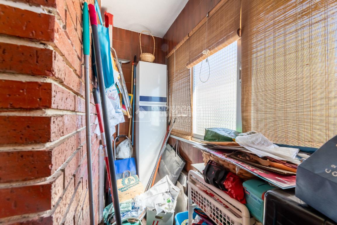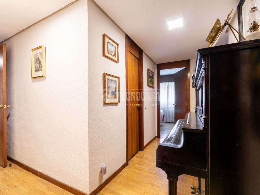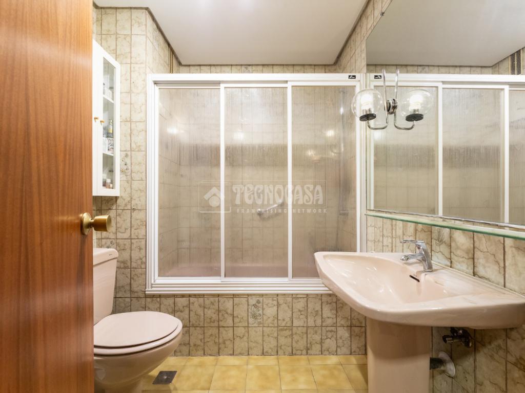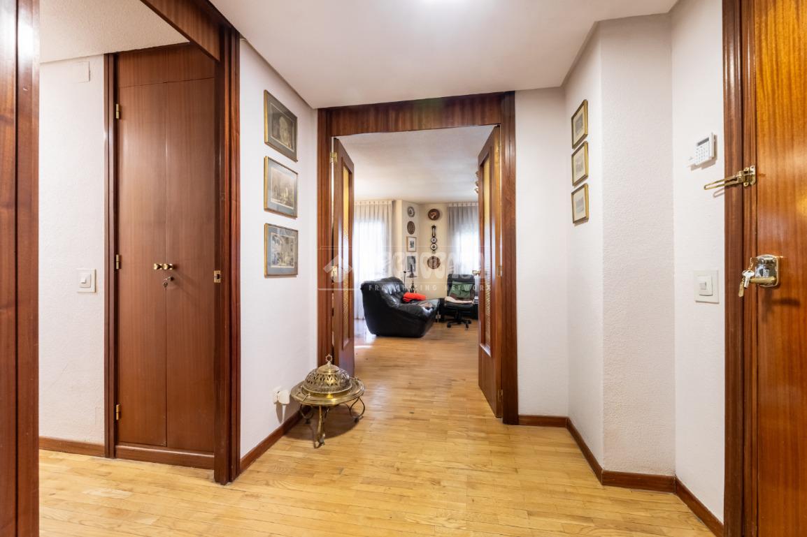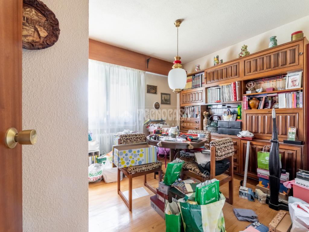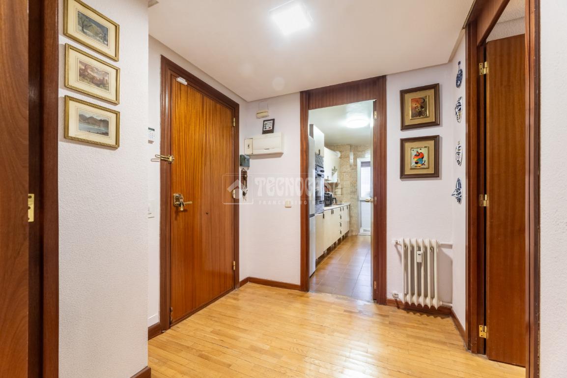 Al piso se accede por un distribuidor muy amplio que nos da acceso directo a un gran salón-comedor con su terraza propia, que se actualizó con cerramiento con ventanas y toldo, zona de sala de estar (con chimenea perfectamente funcional) y comedor. Al otro lado del distribuidor nos encontramos una cocina de fabulosas dimensiones distribuida con doble encimera y que termina en una terraza-tendedero.