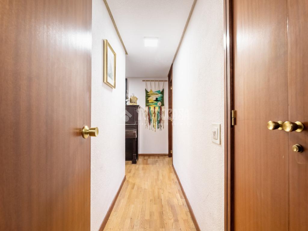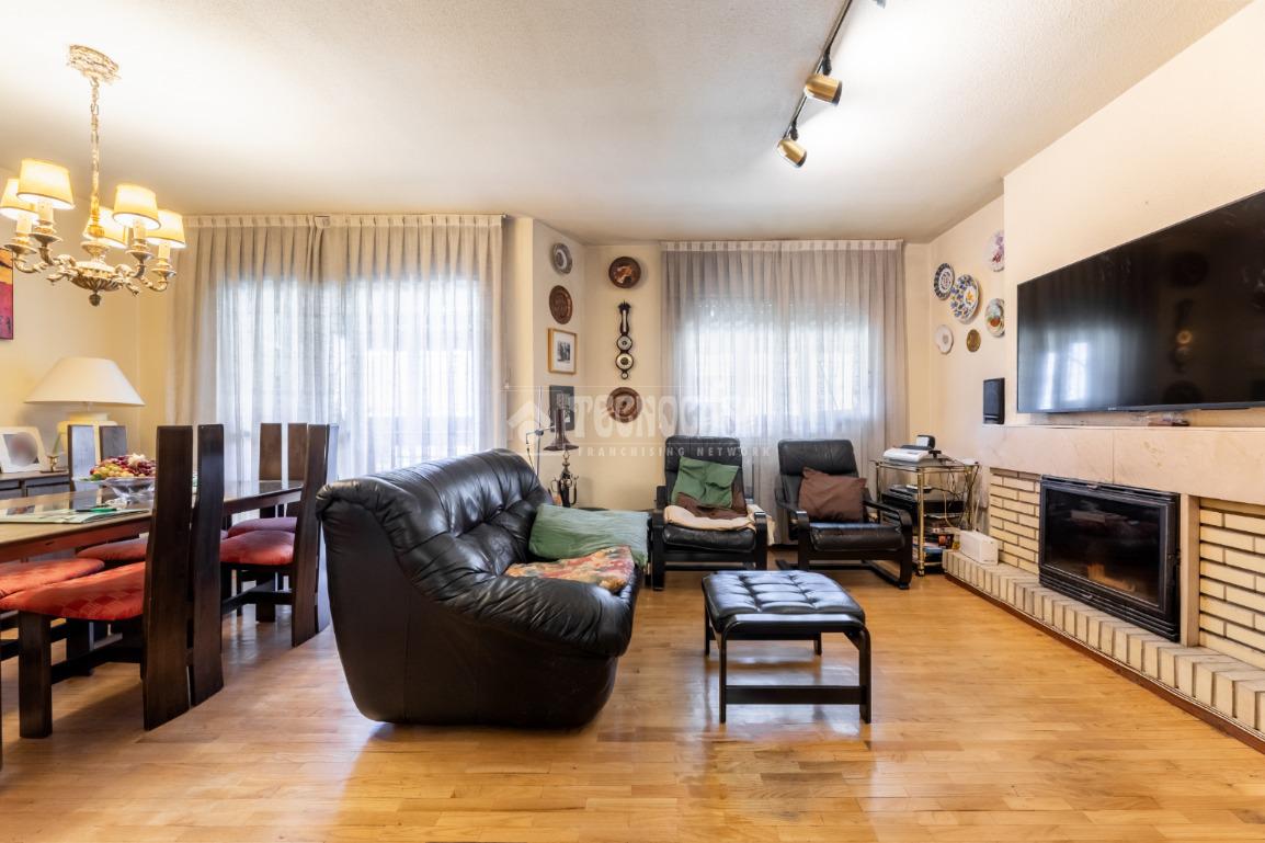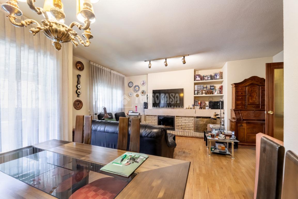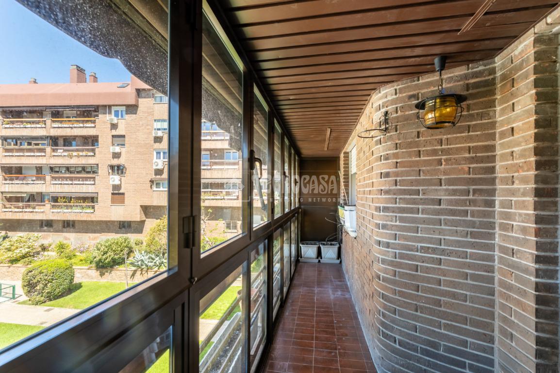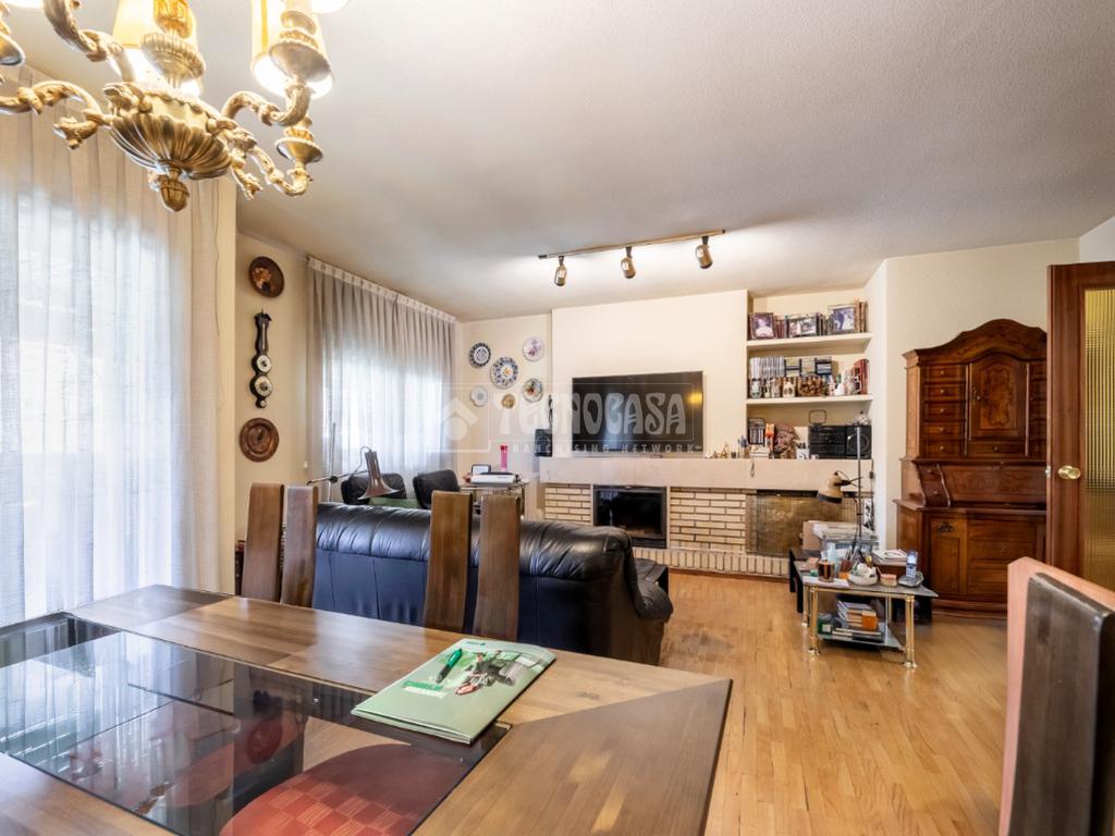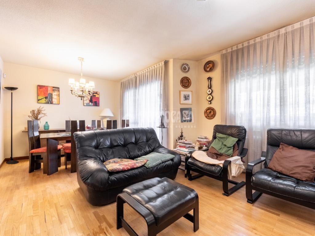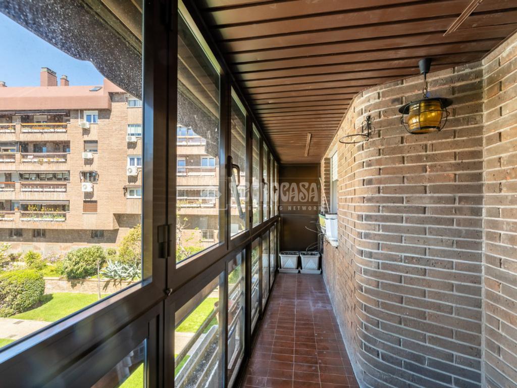 Al piso se accede por un distribuidor muy amplio que nos da acceso directo a un gran salón-comedor con su terraza propia, que se actualizó con cerramiento con ventanas y toldo, zona de sala de estar (con chimenea perfectamente funcional) y comedor. Al otro lado del distribuidor nos encontramos una cocina de fabulosas dimensiones distribuida con doble encimera y que termina en una terraza-tendedero.