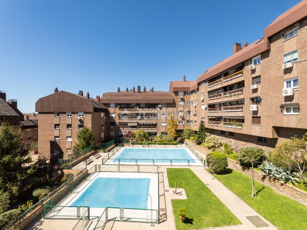 Inmobiliaria en Las Rozas De Madrid - Tecnocasa Estudio Las Rozas Estacion Slu vende fantástica vivienda a reformar con cuatro dormitorios y dos cuartos de baño completos, plaza de garaje y gran trastero de 20 metros cuadrados en el Residencial Bolívar, que cuenta con dos piscinas (una infantil y otra de adultos), zonas verdes y servicio de mantenimiento/conserjería en la urbanización.